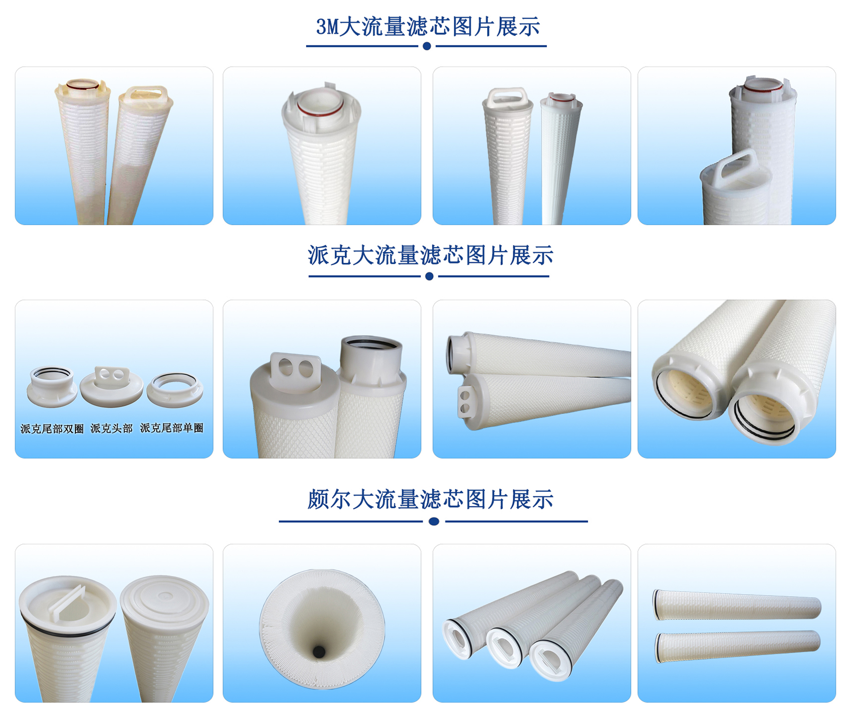 部件材質:濾材:折疊玻纖、折疊深層聚丙烯、熔噴聚丙烯