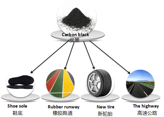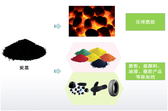 2) 可以墨粉精煉成不同標準,用于油漆顏料,橡膠制品等的添加劑。